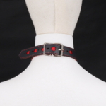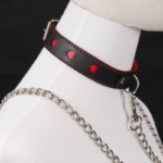 Luna Secret Black & Red Heart Collar With Leash — a striking collar with heart cut-outs and bold red accents, perfect for teasing, restraint, and intimate connection.