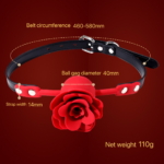 • Red rose-shaped silicone ball gag with breathable holes for comfort