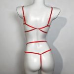 The waist tie wraps around the midsection, subtly accentuating the waistline and enhancing the overall silhouette. Paired with the matching panties, the set creates a bold yet playful look that feels confident, provocative, and irresistibly eye-catching—whether in striking red or timeless black.