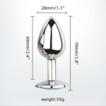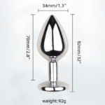 Silver metal anal plug with jewel-studded base for dazzling visual appeal, smooth insertion, and controlled, irresistible pleasure.